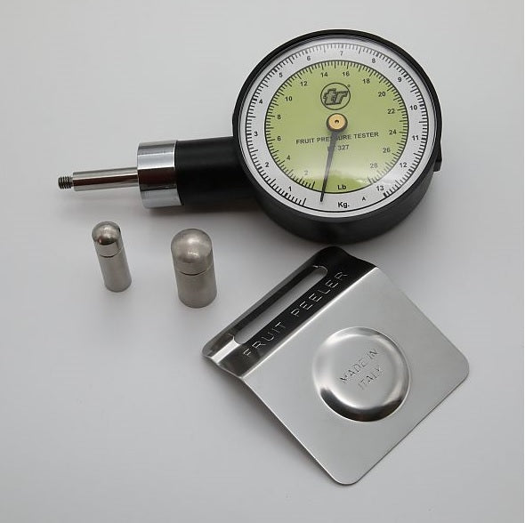 Onderzoek heeft aangetoond dat de hardheid bij de pluk maatgevend is voor de uiteindelijke kwaliteitsfactor. De hardheid is een belangrijke kwaliteitsfactor. Met deze penetrometer kan de hardheid van fruit handmatig worden bepaald. Er worden twee plunjers meegeleverd voor appel (11 mm) en peer (8 mm).