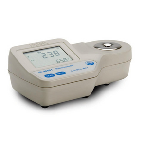 Het suikergehalte in het fruit kan uitstekend worden bepaald met deze digitale refractometer. Het tweedelig LCD scherm toont tegelijkertijd de meting en de temperatuur.